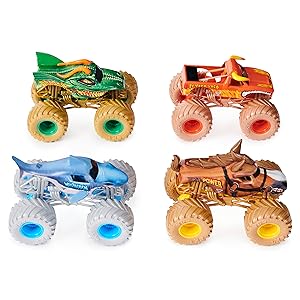 Presentamos el nuevo pack exclusivo Monster Jam Power Beasts de 4 coches metálicos de Monster Jam a escala 1:64. Salta, da giros y compite con estos camiones que no pueden faltar en tu colección.