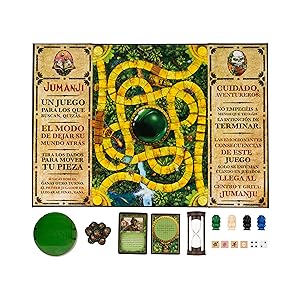 El juego de mesa Jumanji te lleva a ti y a tus compañeros de aventura en una búsqueda a través de la jungla, resolviendo acertijos, sobreviviendo a eventos y completando desafíos.